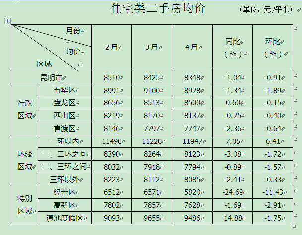 2012年4月昆明二手房均价